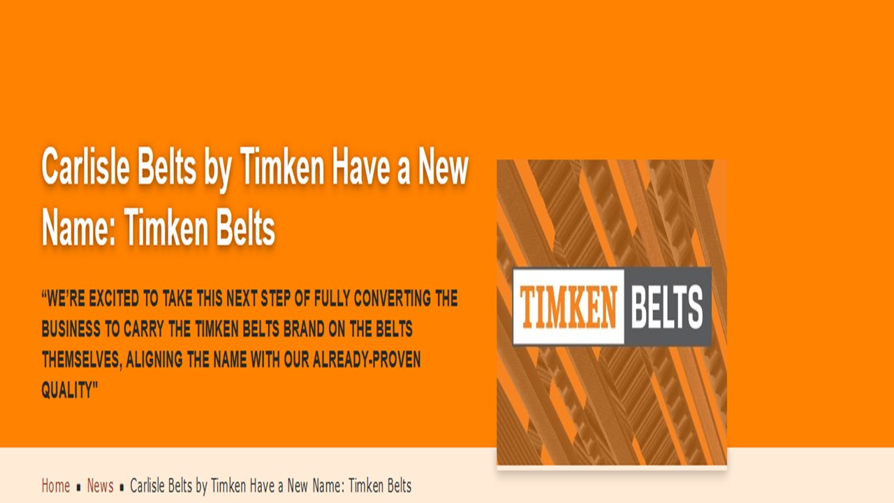 อินโนเทค เบลท์ติ้ง ผู้แทนจำหน่าย สายพาน CARLISLE by Timken สายพานชั้นนำจากอเมริกา ภายใต้ Timken Company -- CARLISLE Belts (A Timken Brand) ซึ่งมีสายพานมากกว่า 20,000 ไอเทม ภายใต้สัญลักษณ์การค้า Carlisle®, Ultimax® และ Panther®